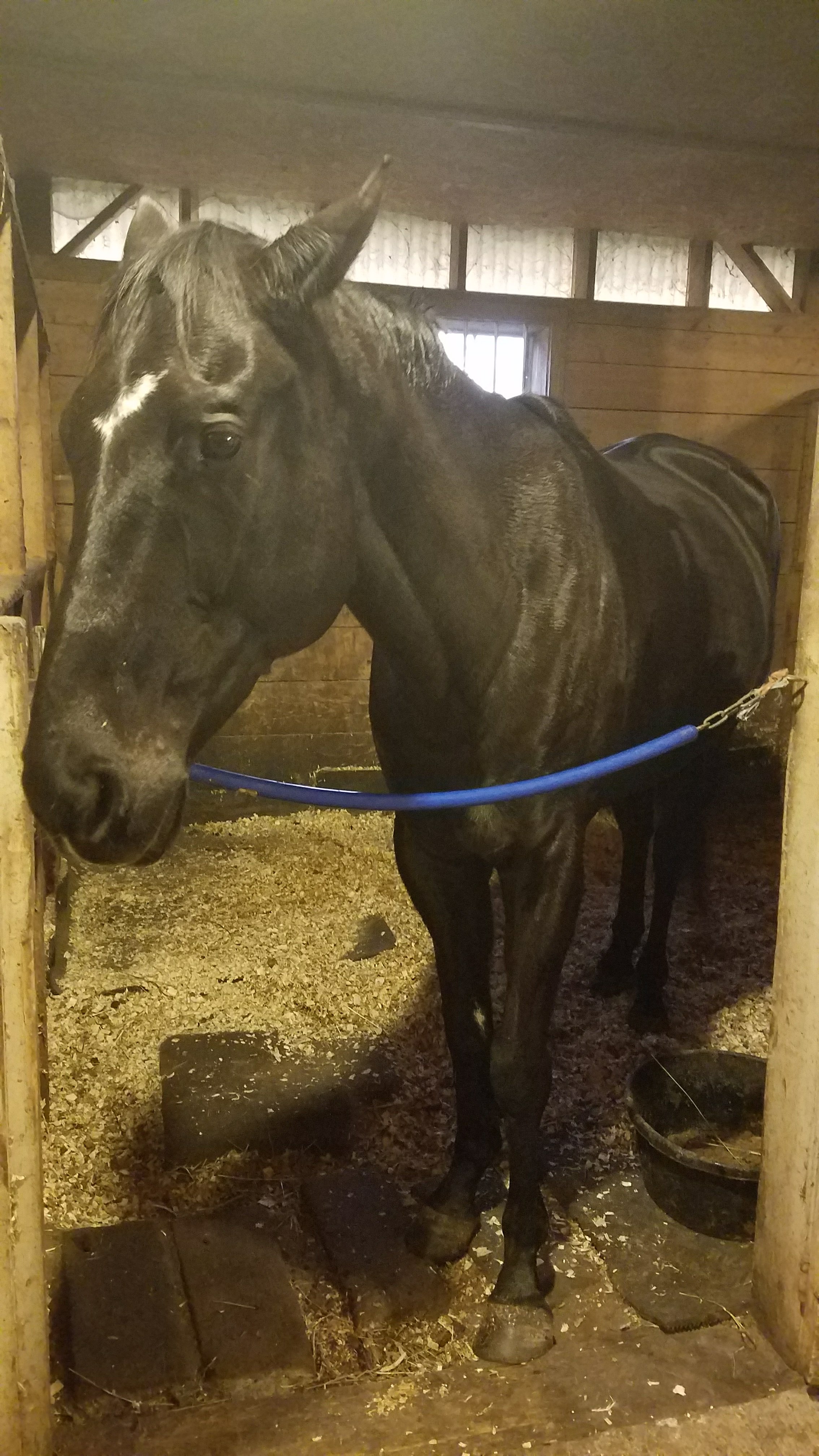 Monday this week I received a text that Blade was acting strange.  Not enough to be emergent but I should visit and take a look at some point during the day.  After a long night of work I got a few hours of sleep and went to check on him.  It had been raining so the horses were all inside staying dry and warm.