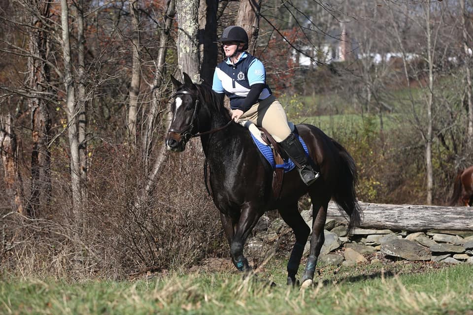 We continued on to the rest of the course. While trekking through the woods a large bay came tearing through with a riderless dressage saddle. We were able to reach his reins and held him until someone came chasing after on a little grey. The man riding took the runaway back to his rider.