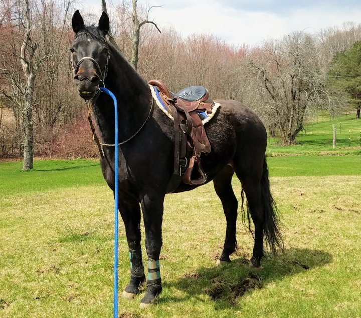 You may remember a few months ago Tiger introduced his new girlfriend, Sadie (Tiger’s Tales: I Have a Girlfriend). Sadie is a stunning, tall, and large-bodied morgan mare. She’s unusually large for her breed, standing at 16 hands. She is 11 years old. My trainer recently got Sadie from a friend and since barns were closed during COVID I was asked to assist in Sadie’s training and care. She came to us at the beginning of April and stayed for two months. While she was with us I was focused on getting her fit, helping her lose weight, and training her.