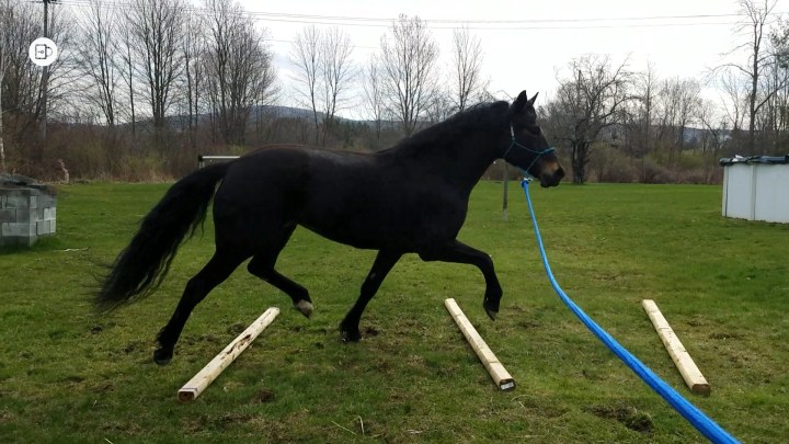 We were coming on three weeks in and I could flail the whip high in the air above Sadie’s head with her staying calm. We were getting to a point where Sadie would follow me around her pen and around the roundpen at will. She began to lunge on a line. She happily walked across my trail bridge.