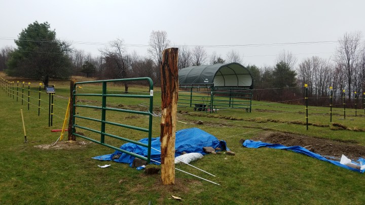 My preferred way to manage space and create paddocks would be to create a single sacrifice pen that opened up to the other paddocks. One sacrifice pen with several turnout options. I didn’t visualize that for our landscape but I am always making improvements to the area.