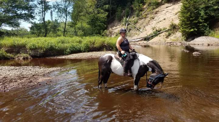 We arrived the first night and unpacked. We managed to bring a ton of food so we enjoyed a snack. We got it together in time to take a nice brief ride (about 1.5 hours). For our first ride I hopped on Tiger while my friend tried out Nahe. I brought the western saddle for him but she wanted to try her English. Within five minutes we determined the saddle was a poor fit so we had to return to camp. Instead of using the saddle she went on my bareback pad. If it wasn’t Nahe and I didn’t know her riding skill I’d have insisted on a saddle but we went along with it. She was confident in herself and I in Nahe. Personally my butt would have been rubbed and sore after 30 minutes but I applaud her.