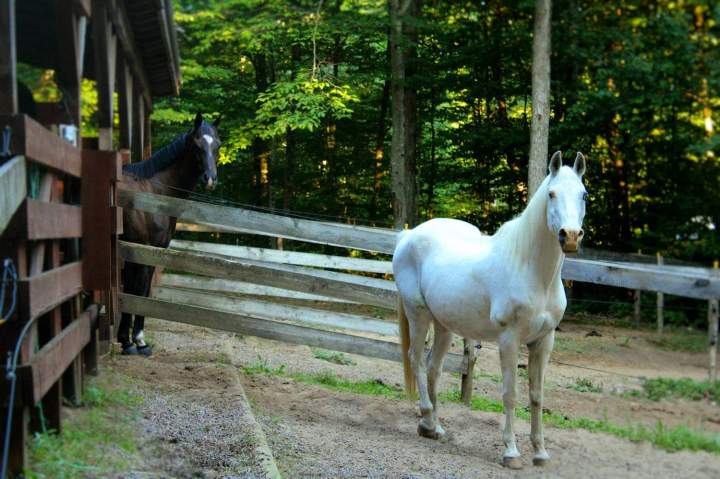 Otter Creek is not terribly far but three hours is still quite a drive. We unloaded everything (and remember I had to pack for TWO horses). The boys happily unloaded and found their favorite roll spot in their pasture. They took a good roll, had a cool drink of water, grabbed a few apples from under the apple tree (which is already dropping ripe apples somehow), then proceeded to graze on the pasture. The day we left I had spent a couple of hours clearing the entire paddock of manure and mowed it so we could come home to a beautiful pasture. The boys were happy.