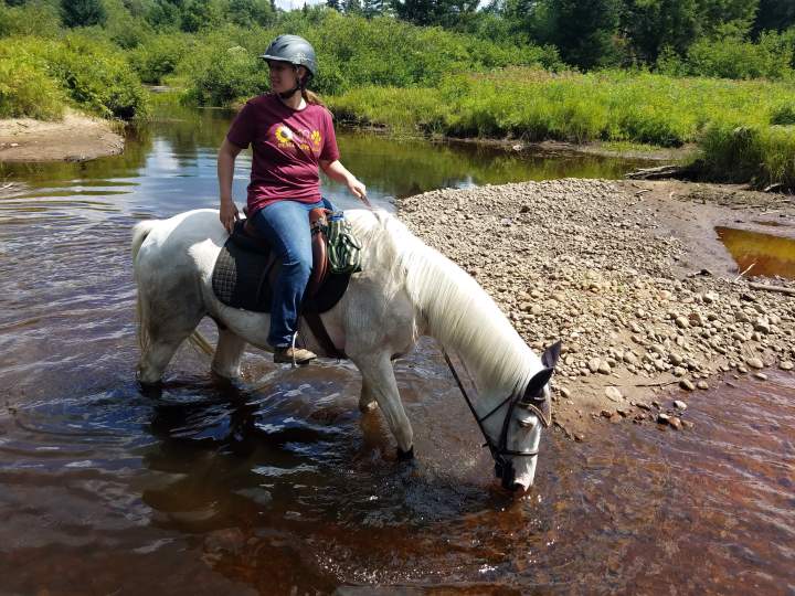 In the morning we casually ate breakfast and were on the trail by around 10/10:30AM. We set out to find water. I was aboard Nahe this time and my friend on Tiger. We had a wonderful start and we even found another place to get in another gallop. I was pleasantly surprised to see Mr. Spunky Stormy himself eager and excited and keeping up with the others. We reached the first spot on the map that was supposed to be water access. Sadly there was a sign the said “No Horses.” It was a bit irritating since the map was for the Otter Creek HORSE Trails and was pinned for having water. We dismounted and walked the horses to the edge of the lake for a drink.