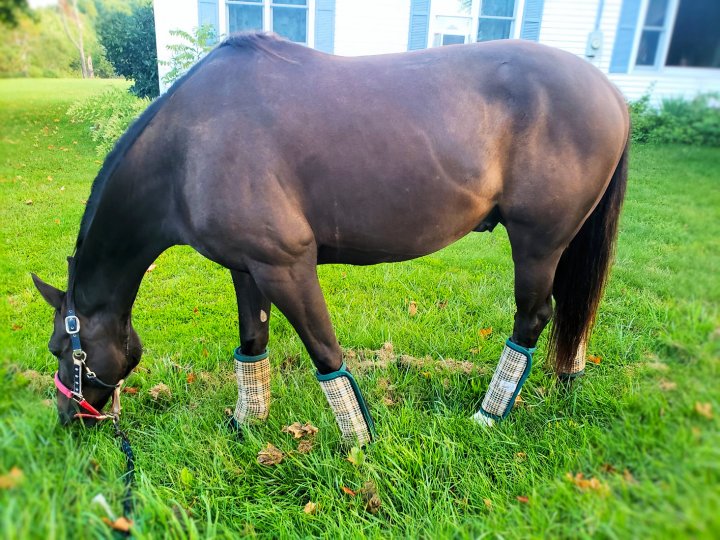 As much as it hurt it was quite hilarious. I took agonizing baby steps to tie Tiger back to his spot with his alfalfa-filled hay net. I must have been dehydrated so my friends gave me two bottles of water which we gone in 5 minutes or less. I untacked, got Tiger HIS water, and continued to SLOWLY put everything back in order. We applied poultice, wrapped legs, and loaded up to return home.