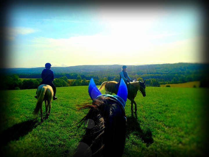 Everything else about the pace was normal. We got ready, got on, and headed toward the starting gate. We waited for the countdown then we were off. For ten miles or so we galloped up hills, across open fields. We trotted through the woods. Walked along the edge of the cornfields. The hills took a lot out of our horses so we walked often.