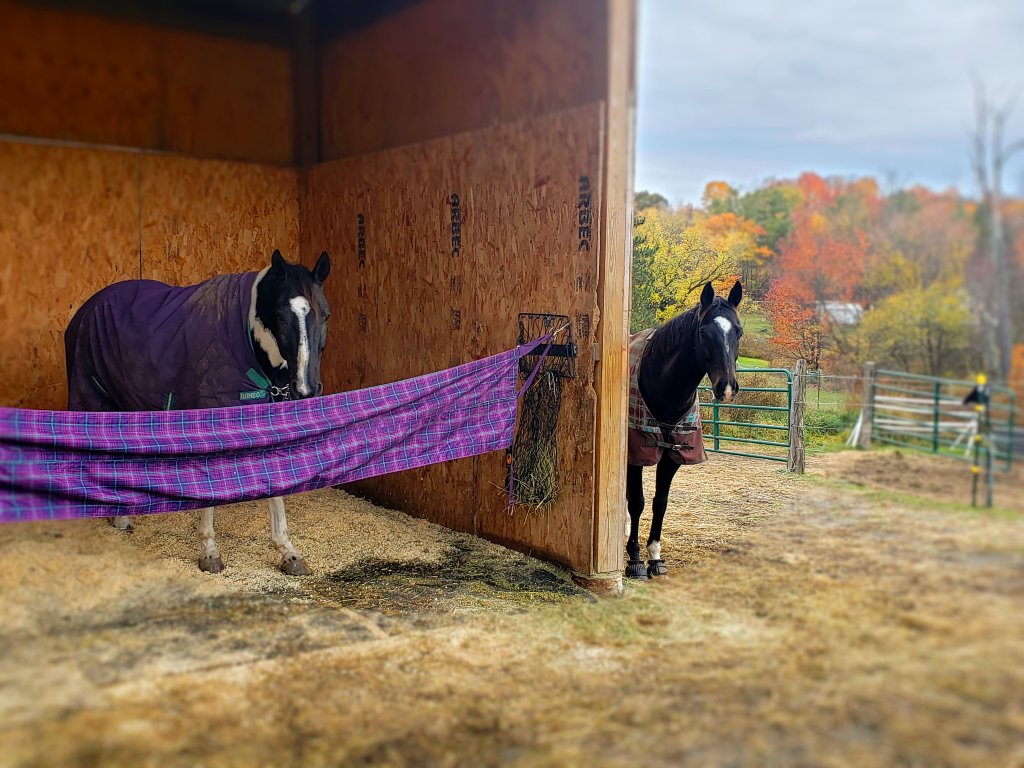 I haven’t ridden my boys since Rombout; it’s either too slippery, too dark, or I simply have too many projects to finish before winter truly hits. As a thank you to my friend for her trailering all year I power washed her trailer….I had to set up the winter water trough insulated box….I cleaned my tack (FINALLY!)….took out the blankets (not just the sheets anymore!)…