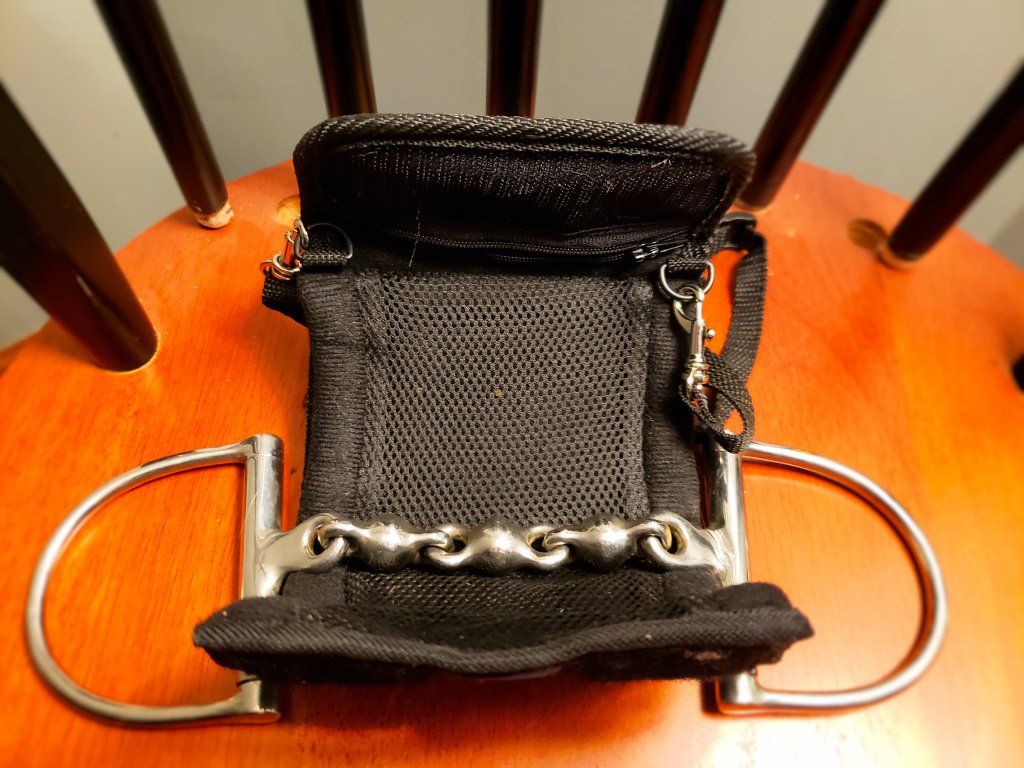 The Bitten Bit Warmer is a small pouch designed to help warm up the bit before use during the winter. It has a mesh pocket that can be used to insert a hand warmer. I have to admit I was pretty bummed when I realized it was just a pouch but it’s working out fine, to be honest.