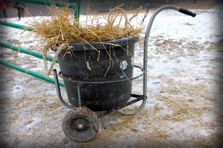 I am fortunate to have a small farm of two horses. Manure management is much more manageable with only two. I have a tow-behind metal cart that’s used with my ATV but I don’t like to hook it up daily. Instead, I use a muck tub and fill the cart over 3-4 days. To move the muck bucket I use a muck bucket cart I purchased through Chick’s Discount Saddlery. I wanted a cart but everywhere I looked at the time was either sold out or much more expensive.
