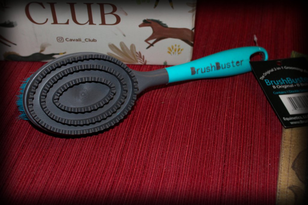In addition to cleaning brushes Carly is starting us off right for spring with a NEW brush! I received the 2-in-1 Curry brush (while some subscribers received a 2-in-1 tail comb). This unique brush has a long handle; On one side is a curry comb, on the other is a bristle brush.