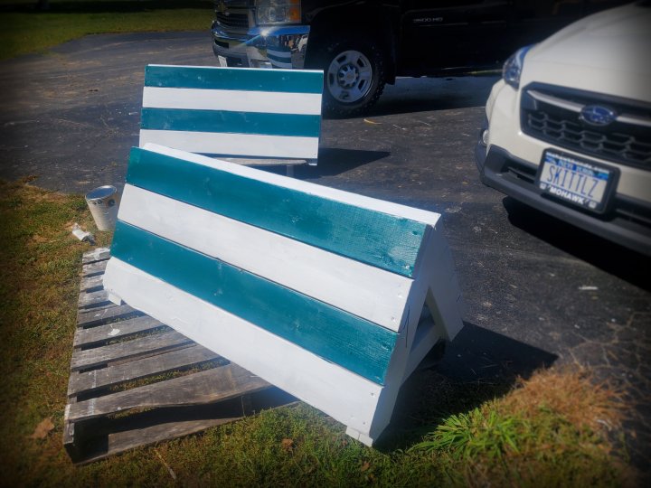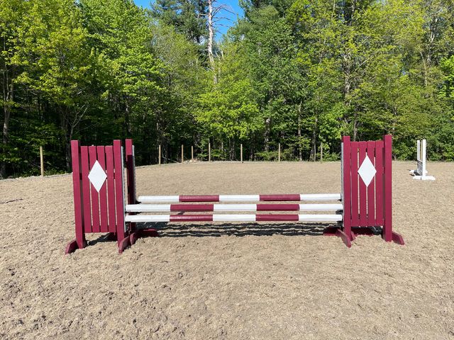 In addition to sponsoring horse shows and building courses I also working with other customers on smaller projects. I began to work with a couple farms on creating some portable cross country style jumps. I even made myself a new pair of A-frames AND painted them!