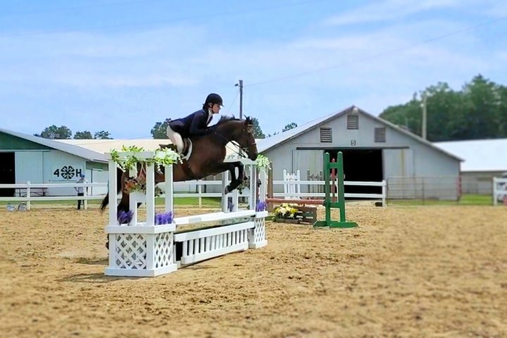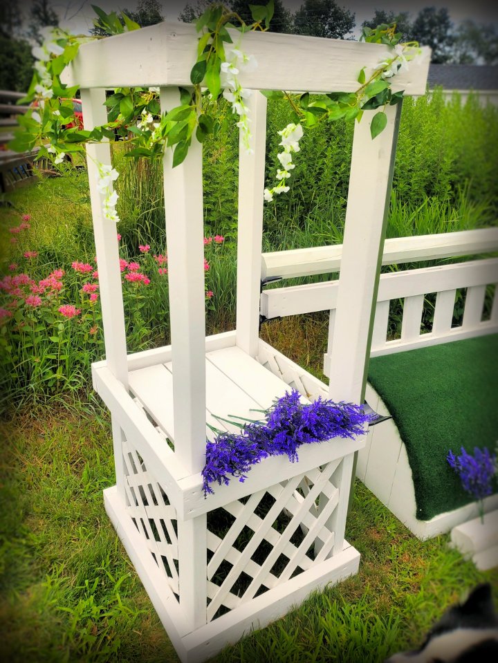 What was really a truly incredible experience was being a sponsor of the Upstate Hunter Jumper Horse Series. For the series I had the freedom to create any jump I desired and display it for use during the show. The jump was a free rental for the show series and was offered for sale to the public. In May I created a Brick Jump with white picket fence. June was a monster set…it involved a full line of wagon wheel wings including an oxer. The vertical sold, but I still have the oxer waiting for it’s buyer at home. In July I made a large column that served as an oxer in one piece. The column was decked in ivy and flowers and the set also sold with a picket gate and a turf lined roll-top.