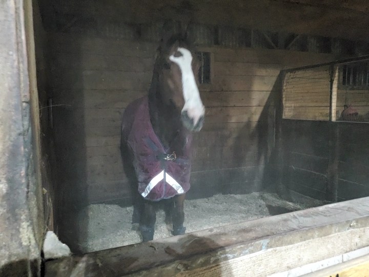 Just because I have a new horse, however, doesn’t at all mean Nahe now gets forgotten. After I made the arrangements to pick up Stanley I loaded Nahe onto the trailer and brought him home with me. He now gets to eat hay at leisure with his other retired girlfriends. I see him every day for kisses and snuggles which he always loves. I keep the shed generously bedded and he shows his appreciation every morning coming out with shavings embedded in his mane and tail. Tiger used to boss him around, and the dynamic at home places Nahe as the king. He’s the boss and gets the shed whenever he wants it. He’s a kind boss but his role has most definitely changed since coming home.