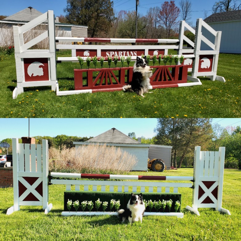 Wahbee’s Woodworking had a great first official year. I started the year by building, painting, and finishing a complete course for New York’s only school with a horseback riding arena. I finished this large order for Greenville FFA in May. The set featured 12 pairs of wings, schooling standards, 6 walls, 6 gates, 30+ poles, filler, and all the artificial flowers to go with it. It took me all winter but they all came out quite lovely.