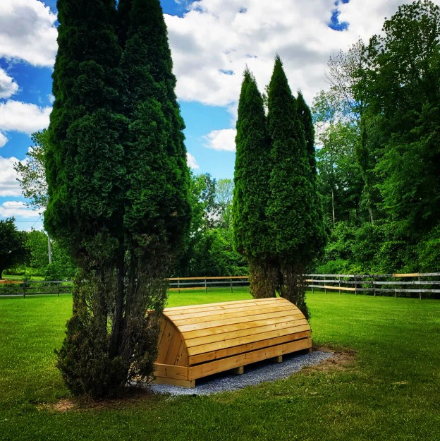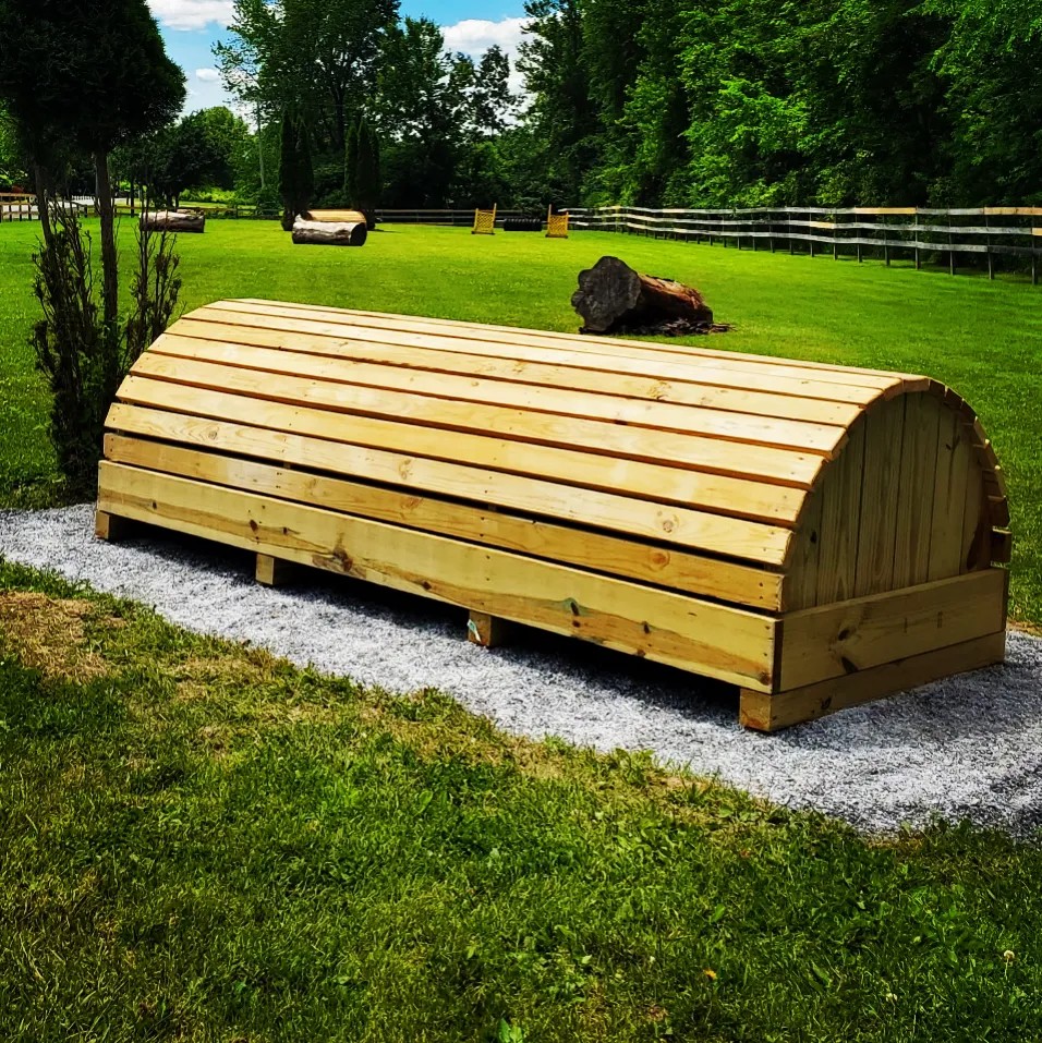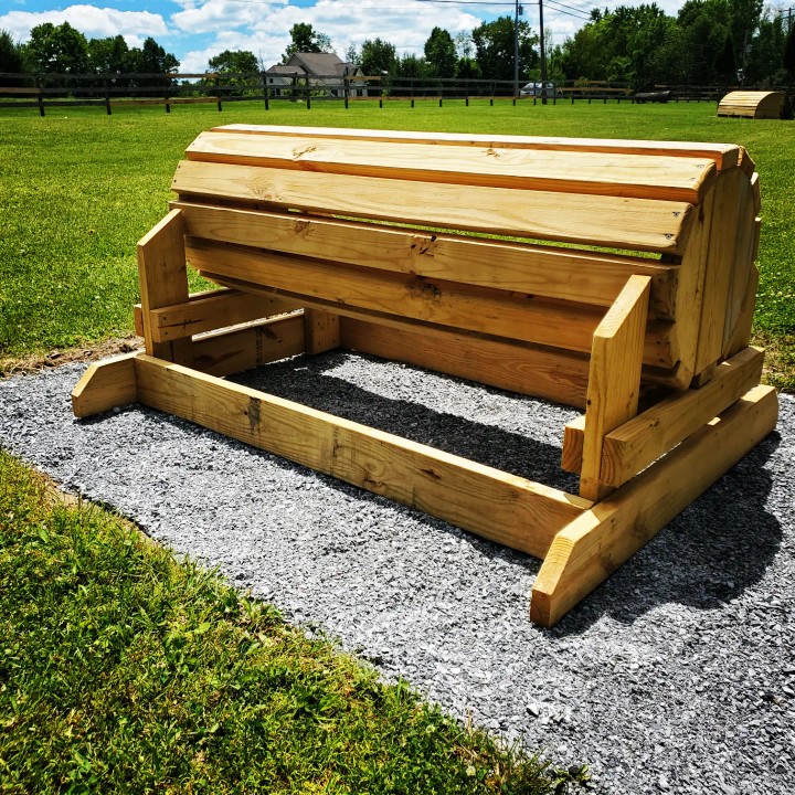 In early Summer amidst my adventures with Nahe and my full-time job I built some cross-country schooling jumps for a local equestrian. He asked for a couple jumps that were jumpable from both sides. He wanted novice height, 2’10-2’11”. He also wanted a skinny log that was 2’7.” The first of the jumps I built was a bench/roll. From one side is a rolltop. From the other is a bench. The second jump I built was a true rolltop.