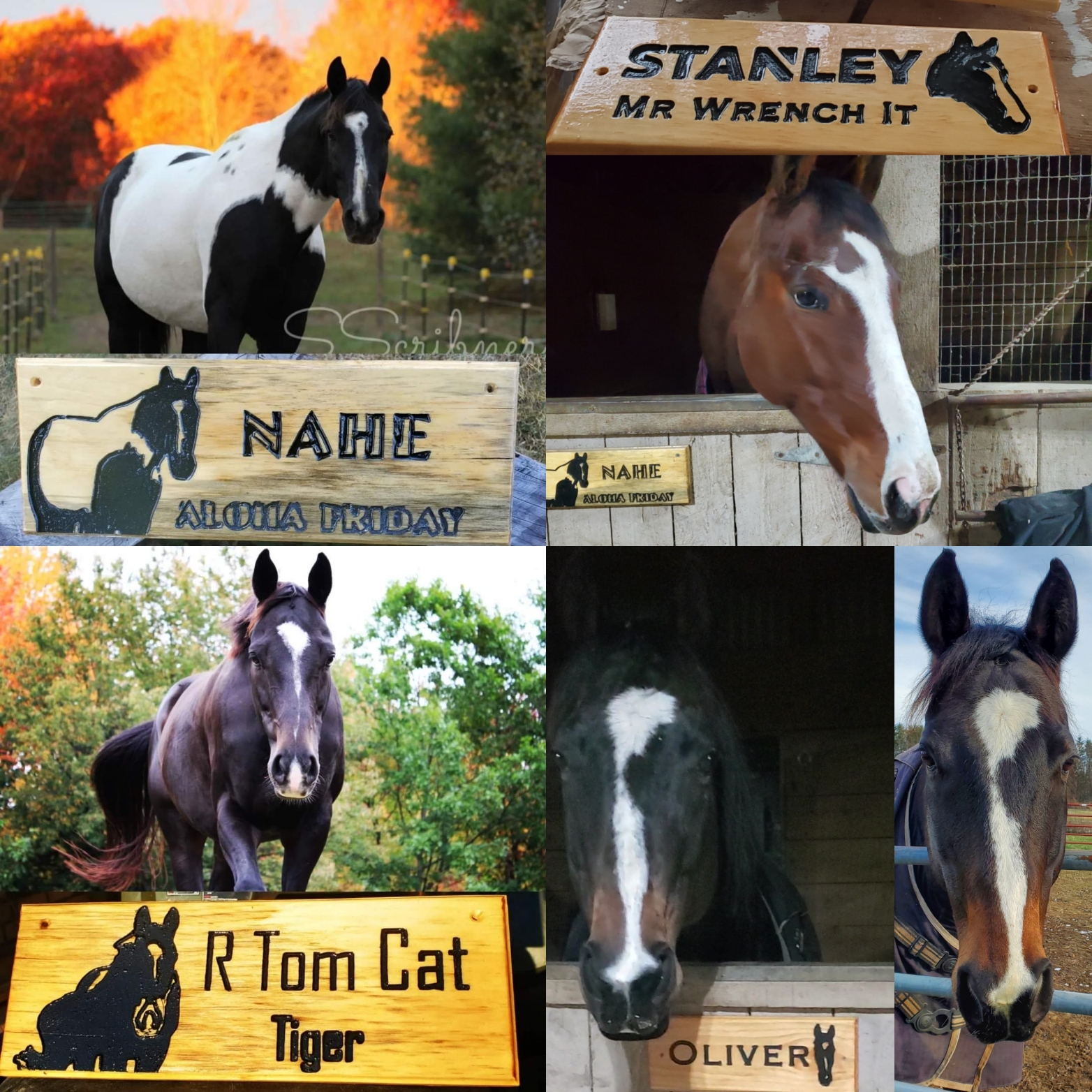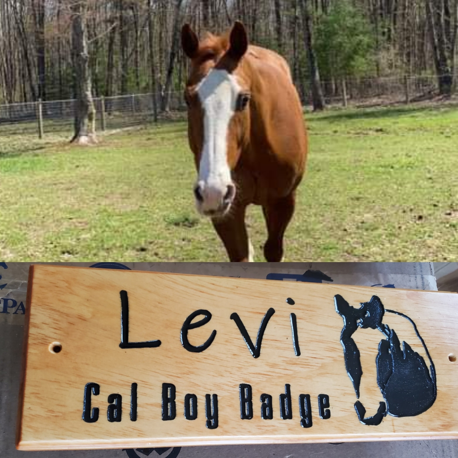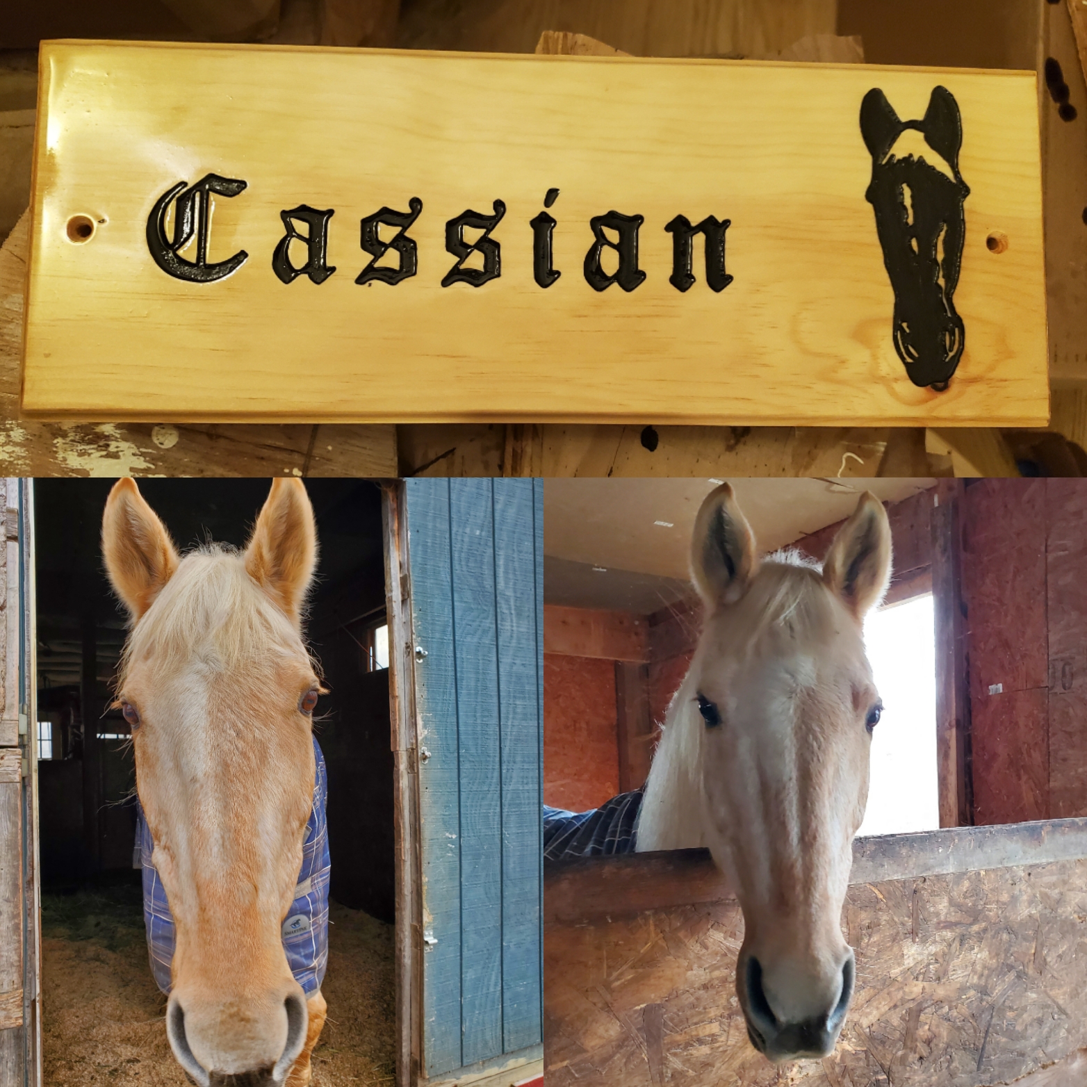 Among my first projects was a set of dressage letters made for my trainer. The letters were a challenge to get the angles just right but in the end, they came out nice. I carved the letters on 3 sides using my machine, painted them green, and we left the wood with a natural stain and satin clear coat.