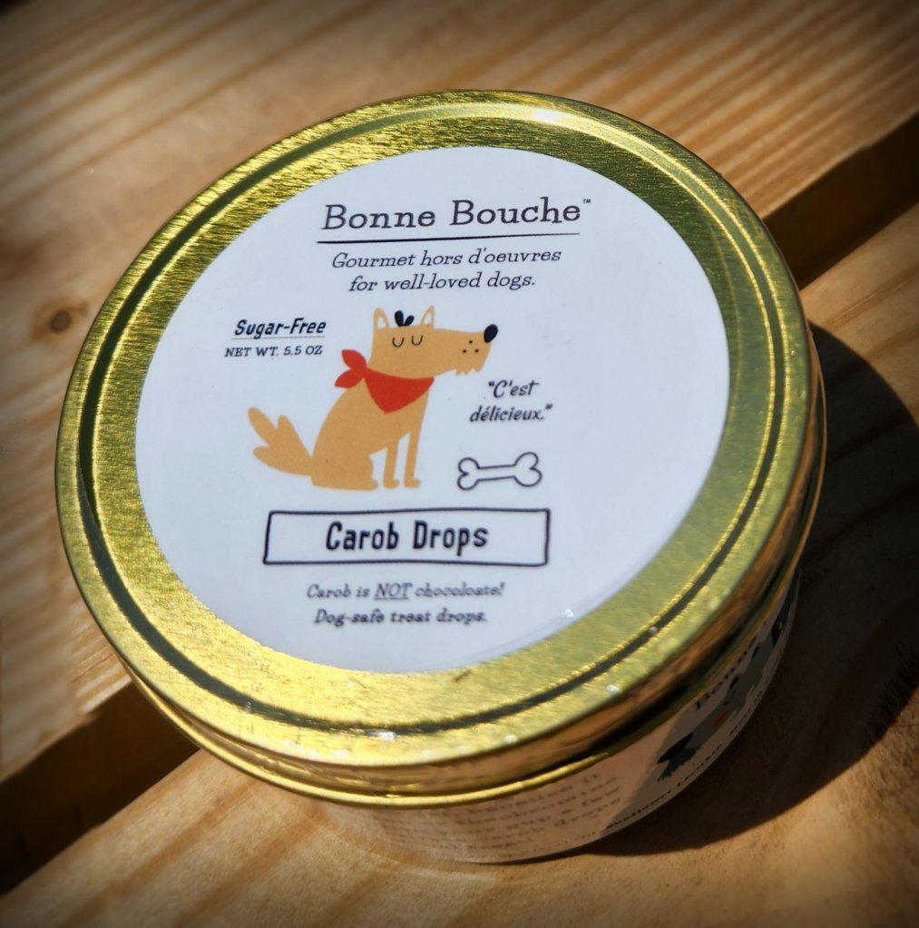 The first edible came in a little metal tin labeled Bonne Bouche. Inside were sugar-free Carob Drops. These are little treats that are chocolatey but safe for the doggos. I tried one too and they weren’t too bad!