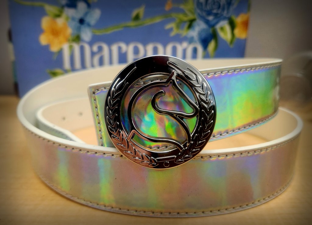 For the second customization in the Summertime Marengo box I chose to receive the Standard Issue Holographic Belt. It’s so shiny and “extra” and the belt buckle is outstanding! It will certainly draw attention when I wear it to clinics or lessons!