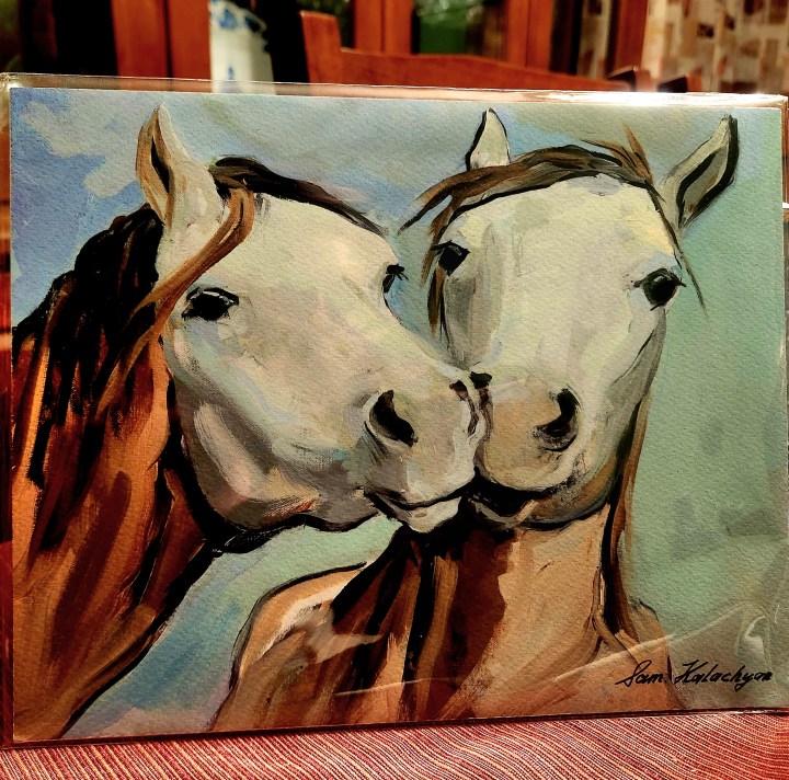 Carly often works with talented artists, and this season I received an oil print called “Pure Love” from Samvel Kalachyan. The scene is quite adorable. Sam is an Armenian-American artist who grew up with a passion for art. The print is 8×10 and is a giclee print, said to have a higher level of quality, color, and longevity than ordinary prints.