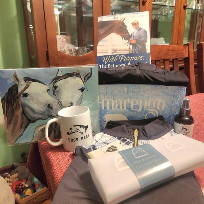 Marengo is a carefully curated selection of items…for both horse and human…taking into consideration new items, novelty, high-end, and highly useful. For one low price you receive a box loaded with incredible value; choose to get your box one time or get it seasonally. Each seasonal box is $79, which is very fair considering what you get from it…and since it’s only 4x/year it’s less than $320 per year. I don’t think Heart 2 Horse boxes exist anymore but they were monthly and 12 payments of 35/40 were made for over $600 each year (and the contents were much lower in value). Carly partners with small businesses and artists to put together this subscription. Everything is thought out each and every season…even the box is a new design every time.
