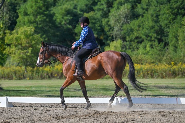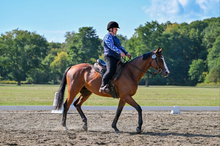 A few rides later we were back in the ring to perform WDAA Intro 4. This test was also walk/trot but included square turns (as double coefficients) as well as a 5m shallow loop off the rail. Getting the geometry right for the loop was my biggest concern. I knew he was good with square turns as I school them every ride. He was even better in this test than the Intro 3. He stayed with me every step and worked with me. I made an oops on my second circle…riding the last corner instead of finishing the circle. I walked out of the ring again smiling ear to ear. I felt on top of the world to have a happy relaxed horse that wanted to work with me like he was doing. It’s everything I’ve been working towards all year long.