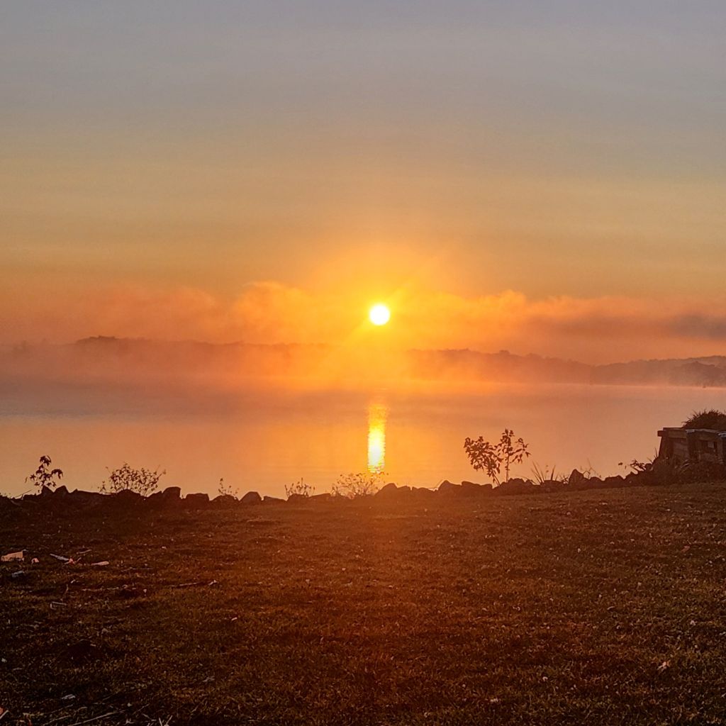 I walked out to enjoy the serenity of the dock at dawn. We were staying right on Elk River. The world was quiet, the steam was rising from the water. There were some Canadian geese in the distance and an occasional fish jumping out of the water. Farther beyond I saw a hot air balloon. If we had the time it wouldn’t have been the perfect setting for morning coffee/tea and some yoga. Perhaps on another trip.