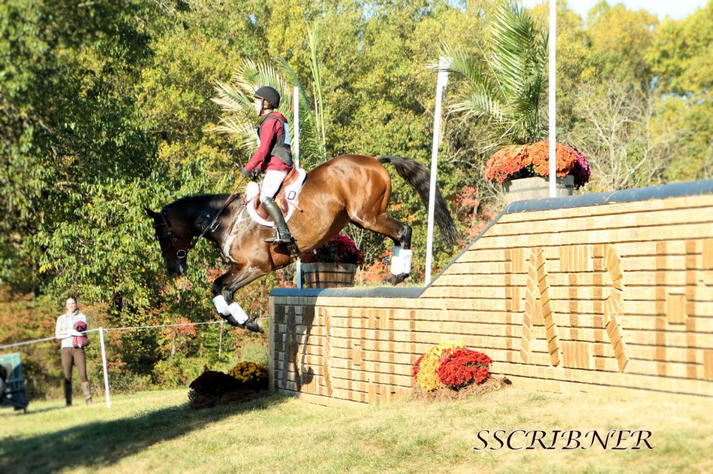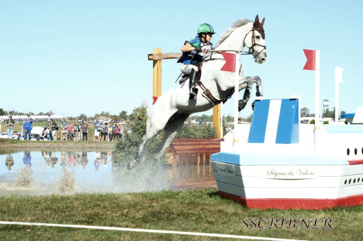 We saw our first rider Harry Meade jump a giant table at 3 into the water and up out of the water over another table. I was so bummed that the scheduled first rider Jessica Phoenix withdrew before the XC. We caught Harry in time to watch him take the timber rails at a distance and he came up and jumped through the sunken road in front of us.