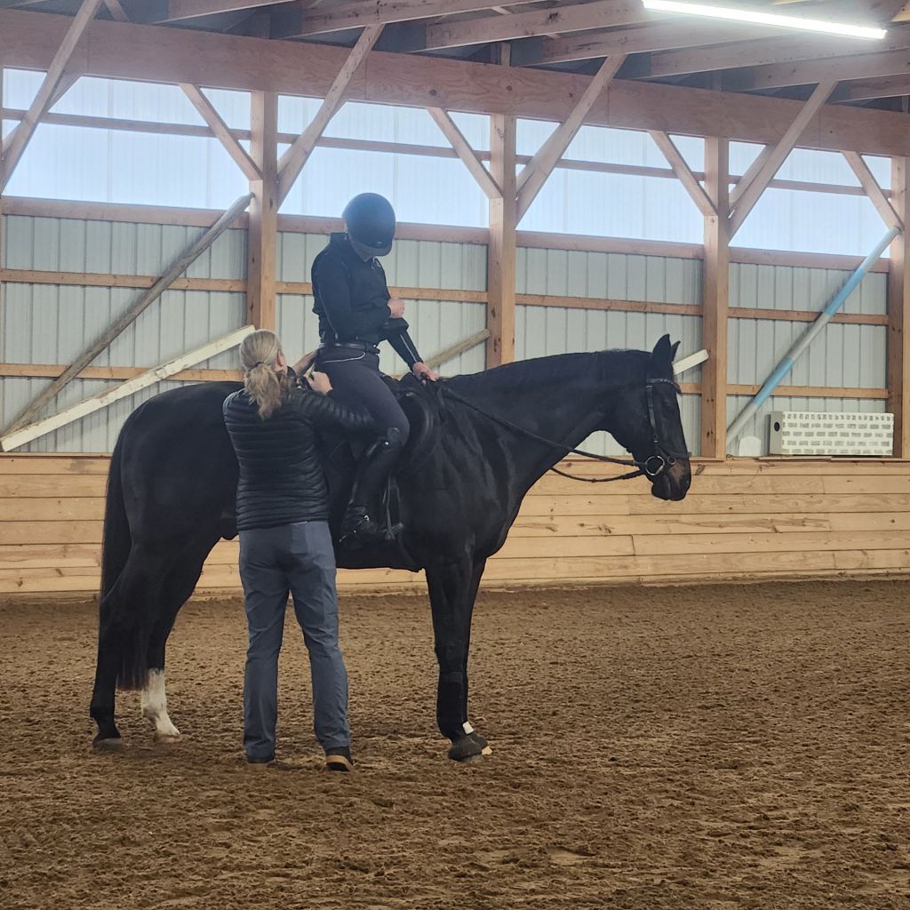 I got on and had to wake him up a bit. Immediately I noticed more feeling in my right stirrup. I felt more balanced.
