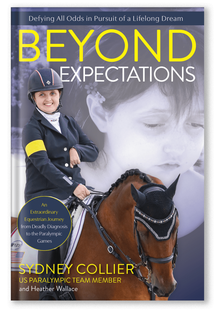 The book continues to describe Sydney’s discovery of para dressage. She found her calling thanks to a late friend Jonathon Wentz who was competing at the 2010 World Equestrian Games at the time. Jonathon suffered from cerebral palsy and passed in October 2012, just months after representing the United States in the 2012 Paralympics. Syndey’s path crossed Jonathon’s serendipitously and she made it her mission to continue his vision.
