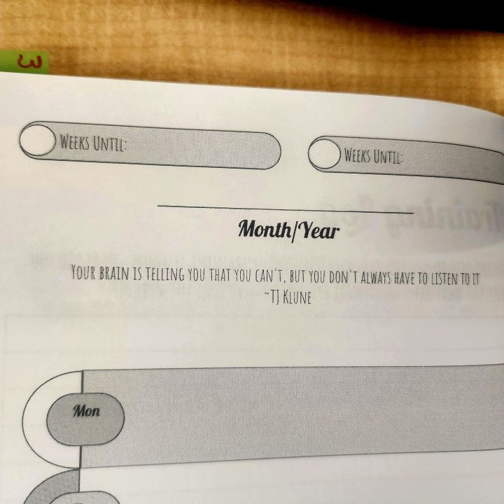 At the top of each page you have 2 countdowns. Big event or clinic coming up? Go to that week ahead and count backward. This section is for those milestone events to help guide your training rides in preparation for those milestone events.