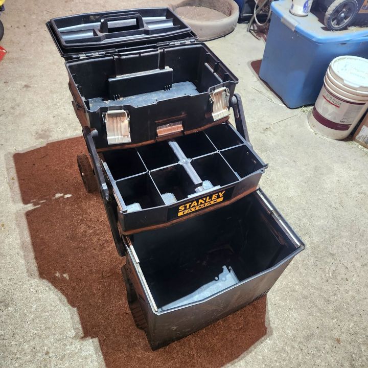 I first saw this idea presented on Facebook so I can’t take credit but wow, I’m so glad I found it! BONUS points because I was able to find this type of box with the STANLEY BRAND on it. It’s ready for Stanley’s gear!