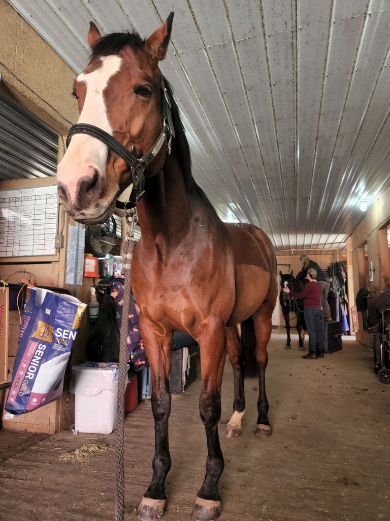 I wasn’t sure what to expect with Stanley on his first trip out. It was also our first visit back to Larkin Hill after our fall in 2023 (A Great Opportunity and A Great Lesson Learned). I myself was a little apprehensive. But Stanley showed up with his big boy pants. He rode around the indoor arena with only mild tension (seen as SLIGHTLY rushing through his gaits, but to be fair I was asking for a big walk).