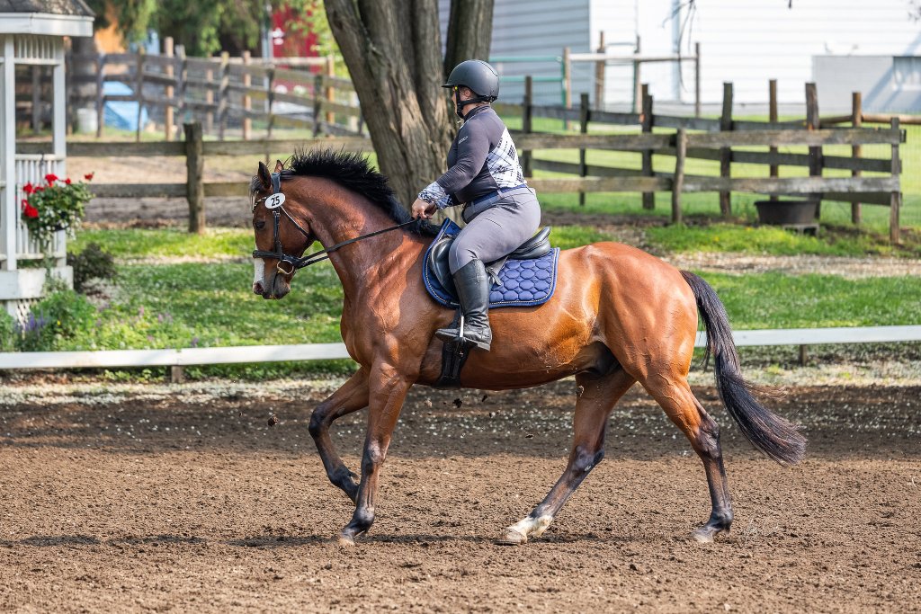 I tried to wait with the girls but realized it was coming time for my second dressage test. I elected to ride Training level test 2. We last the pack and went back to dressage. Stanley was concerned and looking around for his friends but at this point he was getting tired. He was already warmed up so I didn’t tire him out more by “warming up.” We entered the arena and the judge asked…”I saw you earlier but on a different horse.” Nope. Same horse. Finally a little more relaxed (and tired). It worked in our favor, I felt that we had an excellent ride. He was slightly distracted but not to the level of our starter test. I was slightly thrown off with the geometry because they kept the ring full sized. I’ve never ridden in a full sized court so my markers and geometry felt wrong.