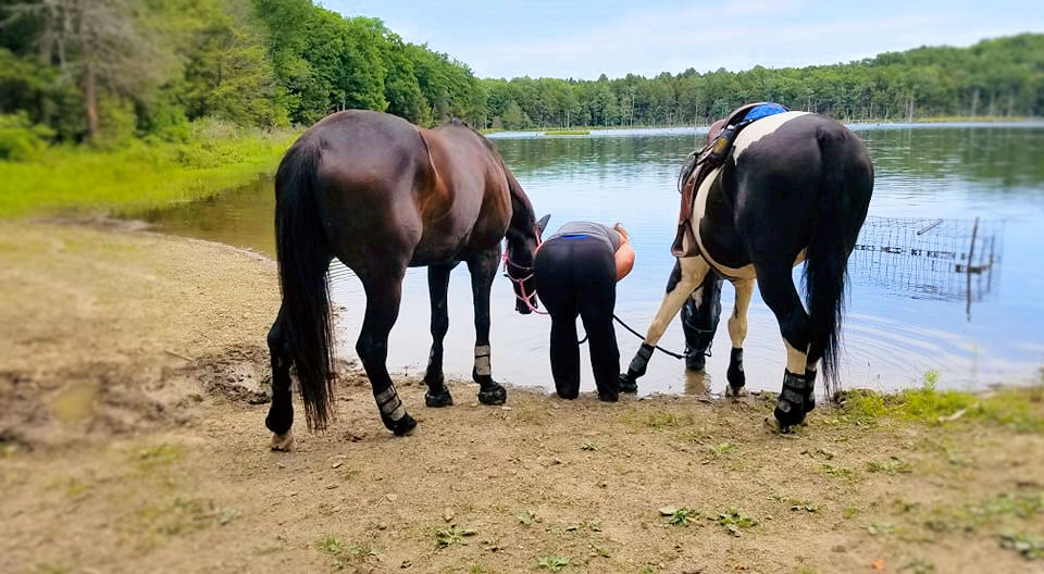 In the afternoon Suzanne and I decided to have a second ride but this time we took a loose rein hack around all the fields. A reward for two very good very tired boys; they could stretch their legs, take it easy, and also be together. We used that as an opportunity to pass through the water one last time, too.
