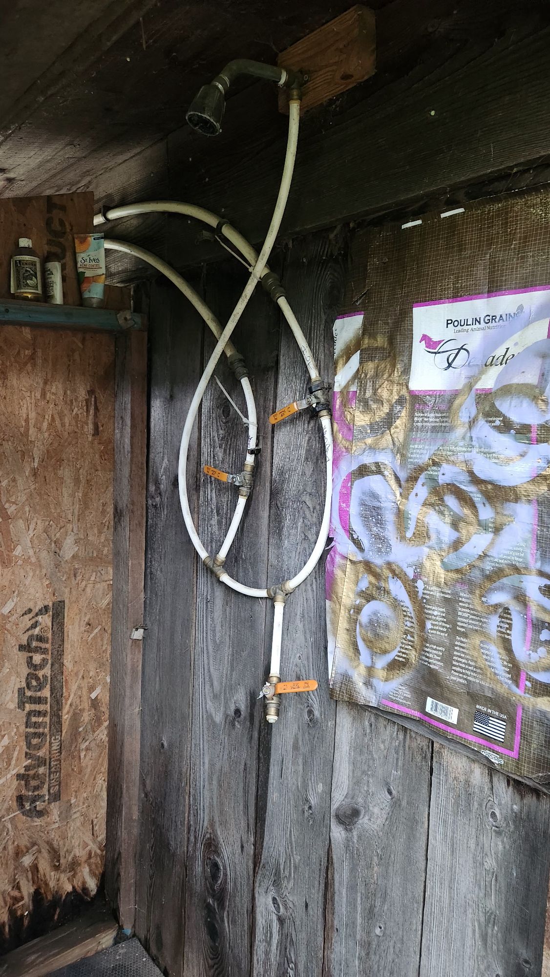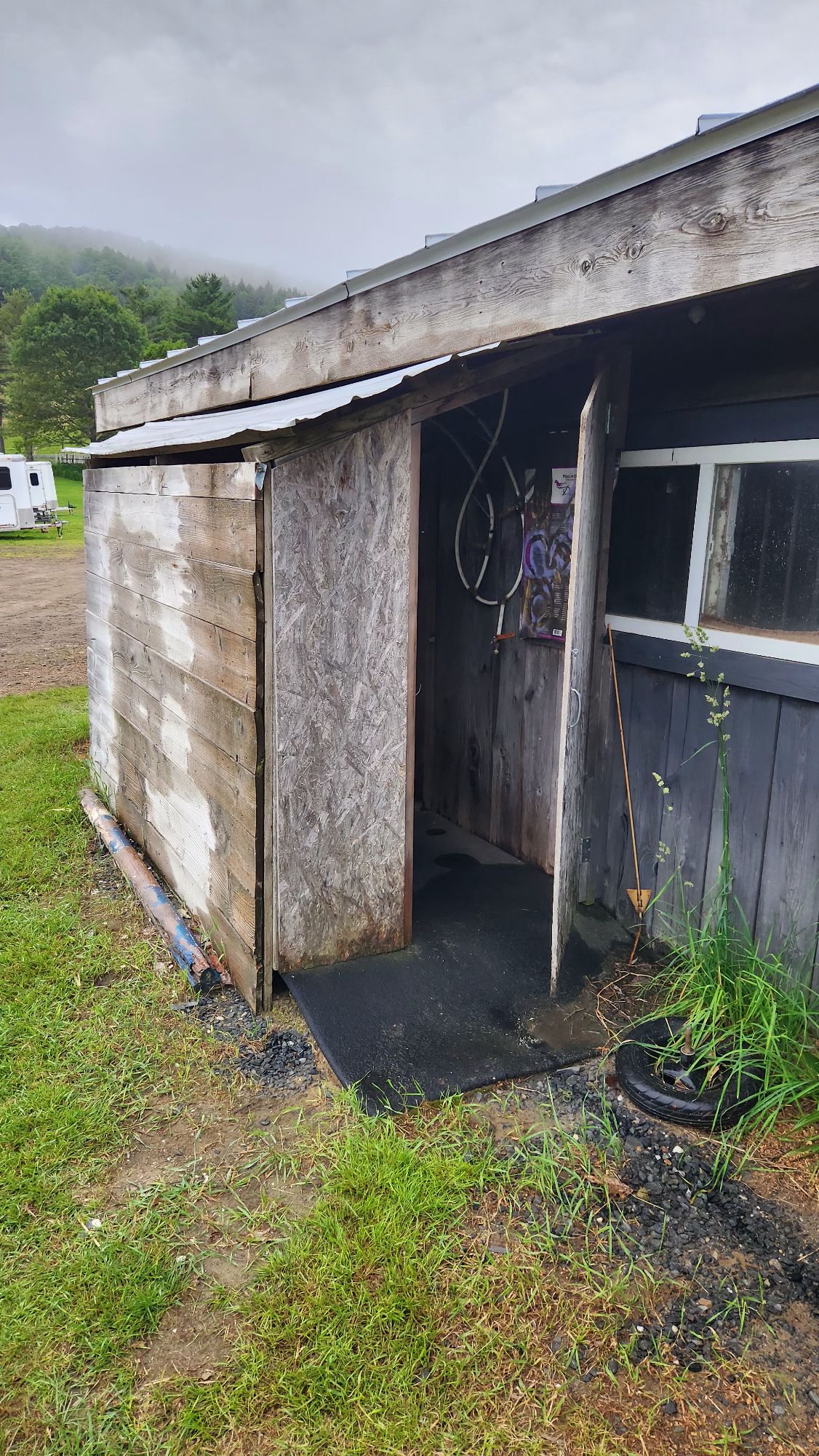 During the week of camp Suzanne and I stayed in her trailer. We slept incredibly well, the weather was ideal ad the bed was comfortable. We both agree that our minimum requirements for comfortable camping is a hot shower and a bathroom. The plumbed toilet at the farm had low water pressure but the porta-porty was clean and easy to access. The showers were rustic but hot and the perfect reward for a long day. In fact I LOVED these showers SO MUCH. There were two…located inside a small lean-to against the horse barn. It had simple but effective plumbing. The hook was outside the door and the doors only locked from the outside. The lighting didn’t work so you had to wait until dawn or shower before dusk. I showered at both side of the day but the morning was magical. While I conditioned my hair and worked a lather in I could look outside at the landscape. The horses were still grazing at the bottom of the hill as the sun rose over the mountains. None of the people had arrived yet so it was quiet and peaceful.
