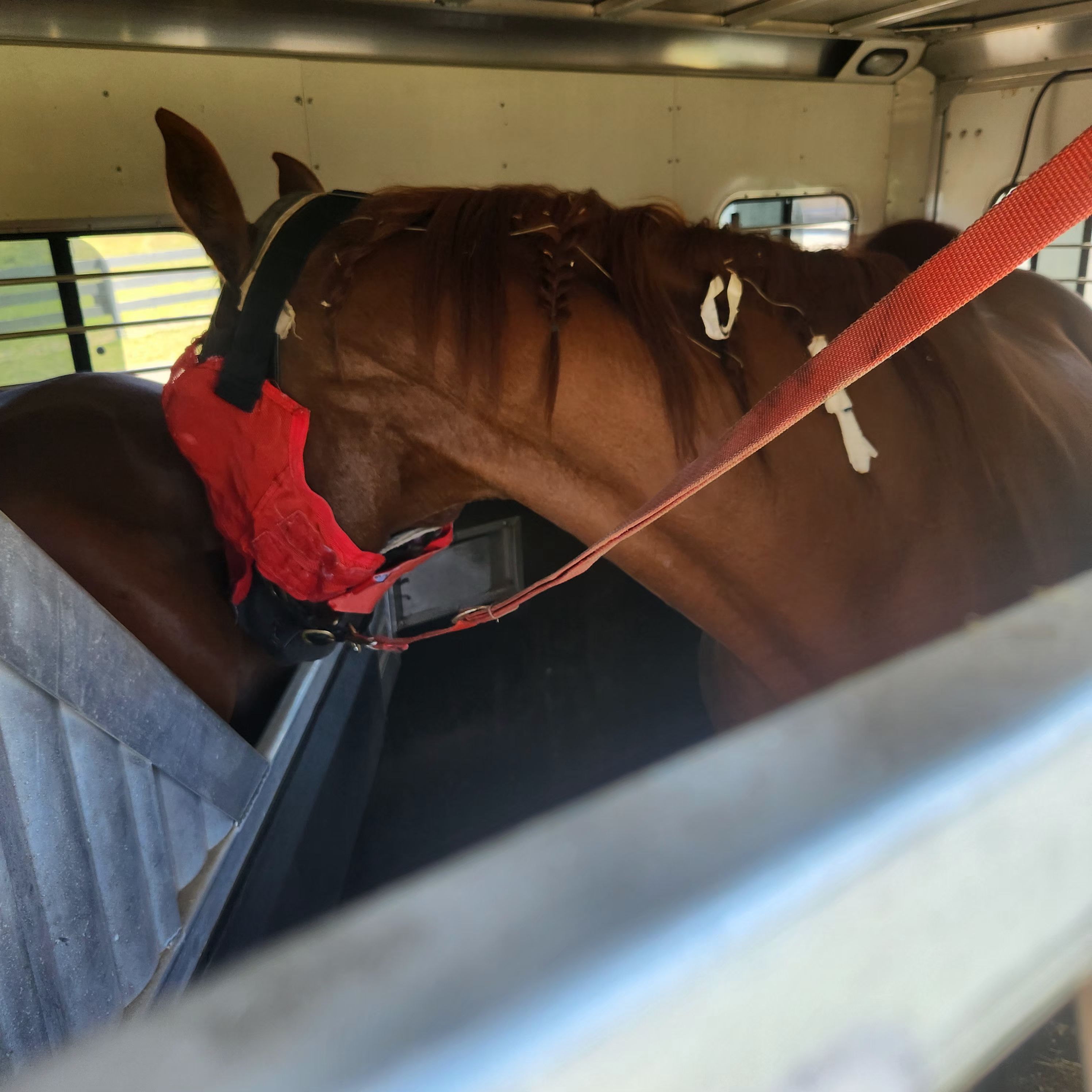 He got into his stall and promptly rubbed his face all over his hay net. Vigorously. Can someone please tell this horse that this is how it all started?!