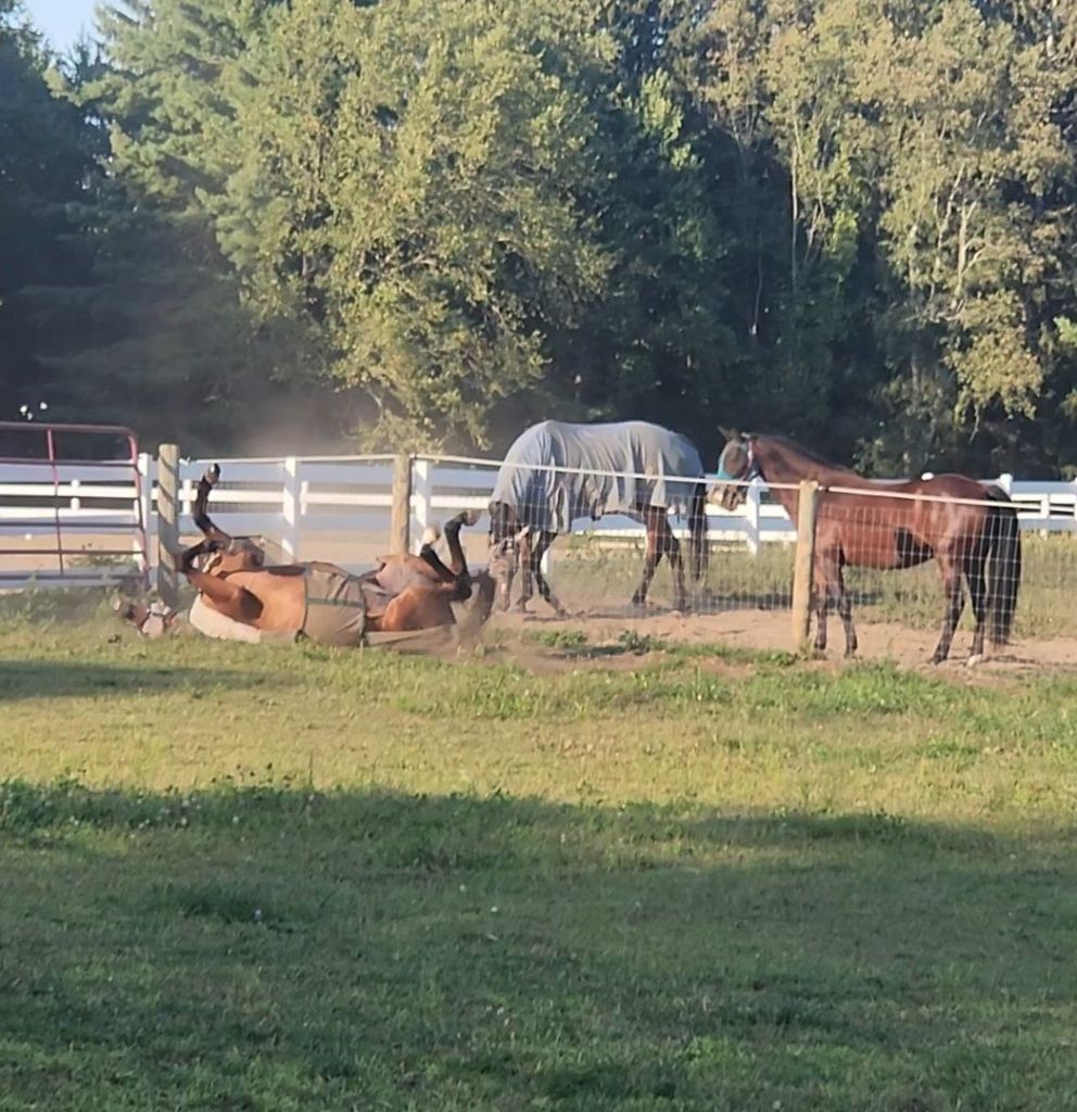 Being on turnout alone is going to help him, for sure. I am excited to put weight back on him and begin to rebuild all the muscle he has lost (he has a pencil neck and angular bum again!!).