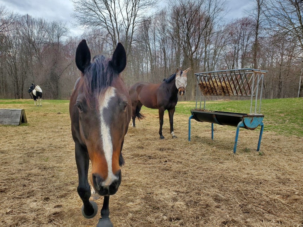 BAD: Later in July, Stanley presented with a corneal ulcer. After 10 days of aggressive home treatment he was rushed to Rhinebeck Equine Hospital. One $2500 night there helped us learn he needed surgery that couldn’t be done there so he was then rushed Friday night with a new buddy presenting with the same issue to Cornell University. On Tuesday he had general anesthesia and his ophthalmologist removed as fungal plaque from his eye. She placed two grafts and we hoped for the best. Over the next 4 weeks Stanley was watched carefully by his ophthalmologist and the amazing team at Cornell. He finally came home September 2nd.