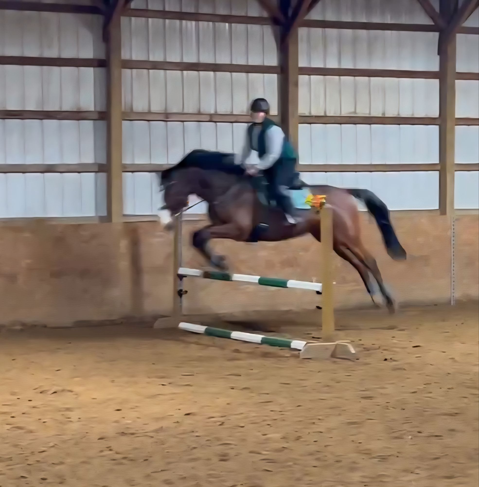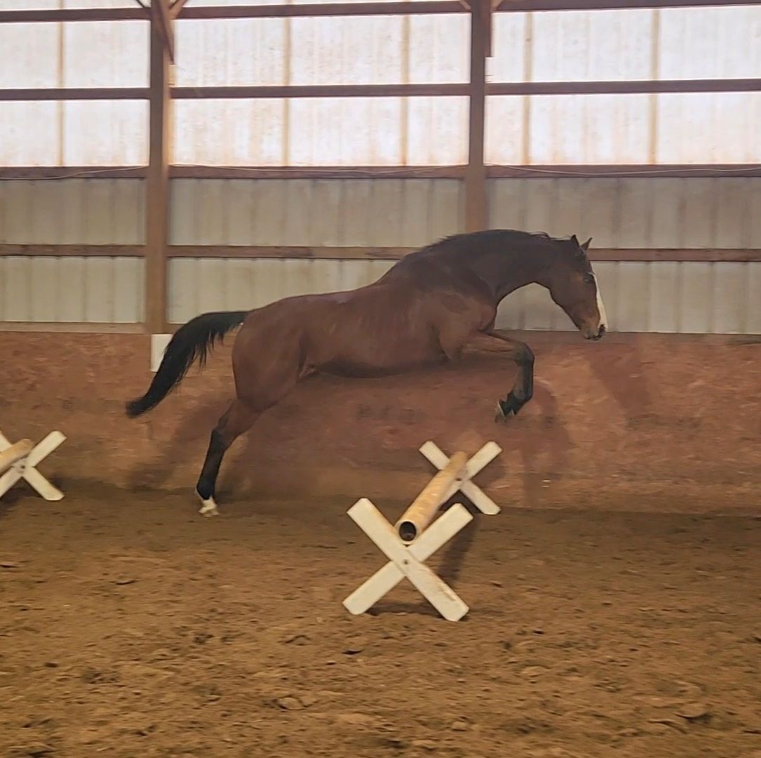 When we got back into work I looked at his saddle fit, it didn’t seem too bad, I added a half pad to help while he built himself back up and until we could get a saddle fitter out. He was coming back into work swimmingly. We even began to take jump lessons and he was having a blast with them.