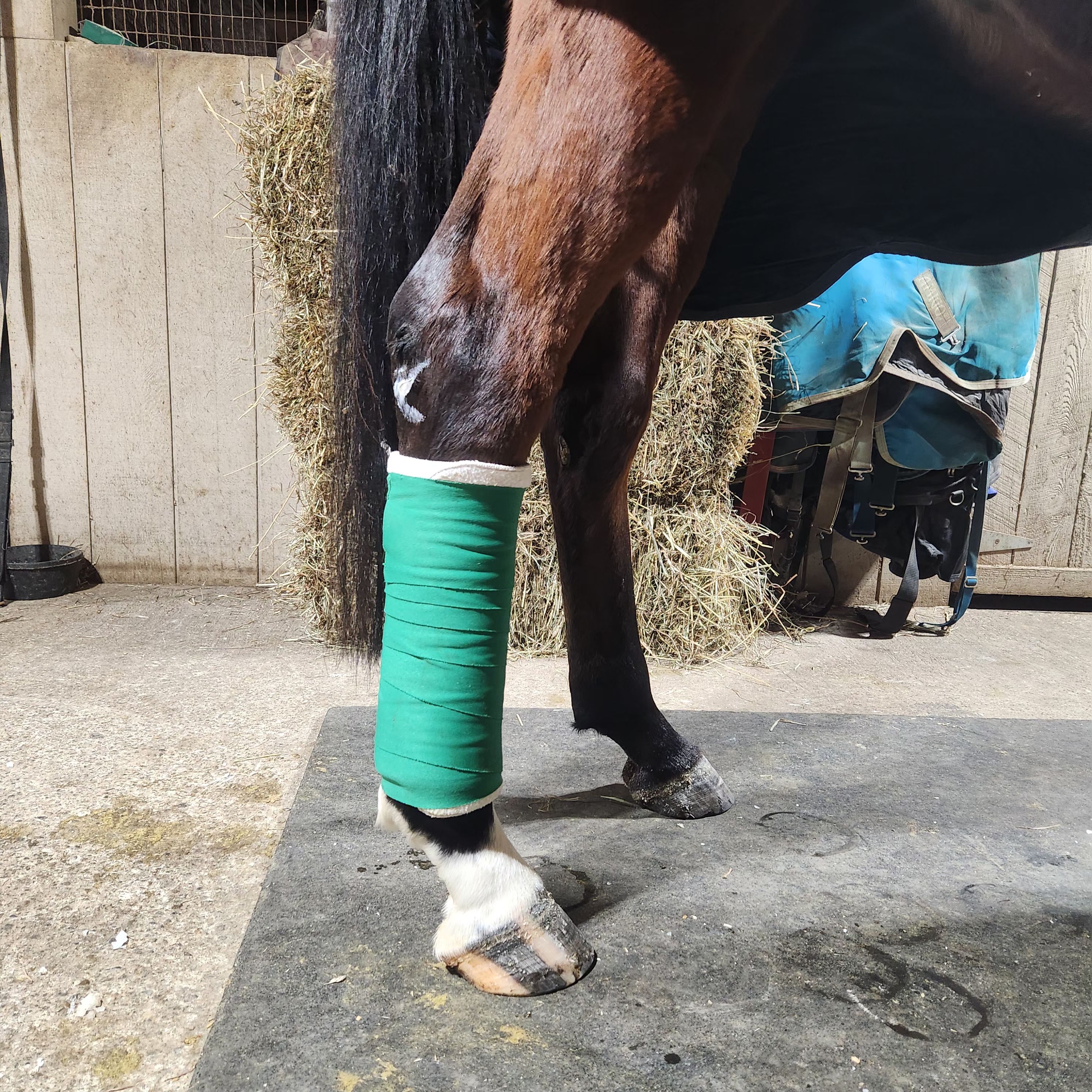 As of the time of this publishing Stanley should be almost finished his course of antibiotics and the wound should be healing up nicely. The swelling was down in a day or 2, I wrapped it 3 nights in a row until the lower leg returned to normal. It was already bitter cold, so his turnout provided natural icing and low-key movement. I continued to monitor daily and reclean/apply cream to the wound. Our other body worker friend has been helping me ultrasound the granulomas and simultaneously did a couple sessions to his leg to help speed up his healing.