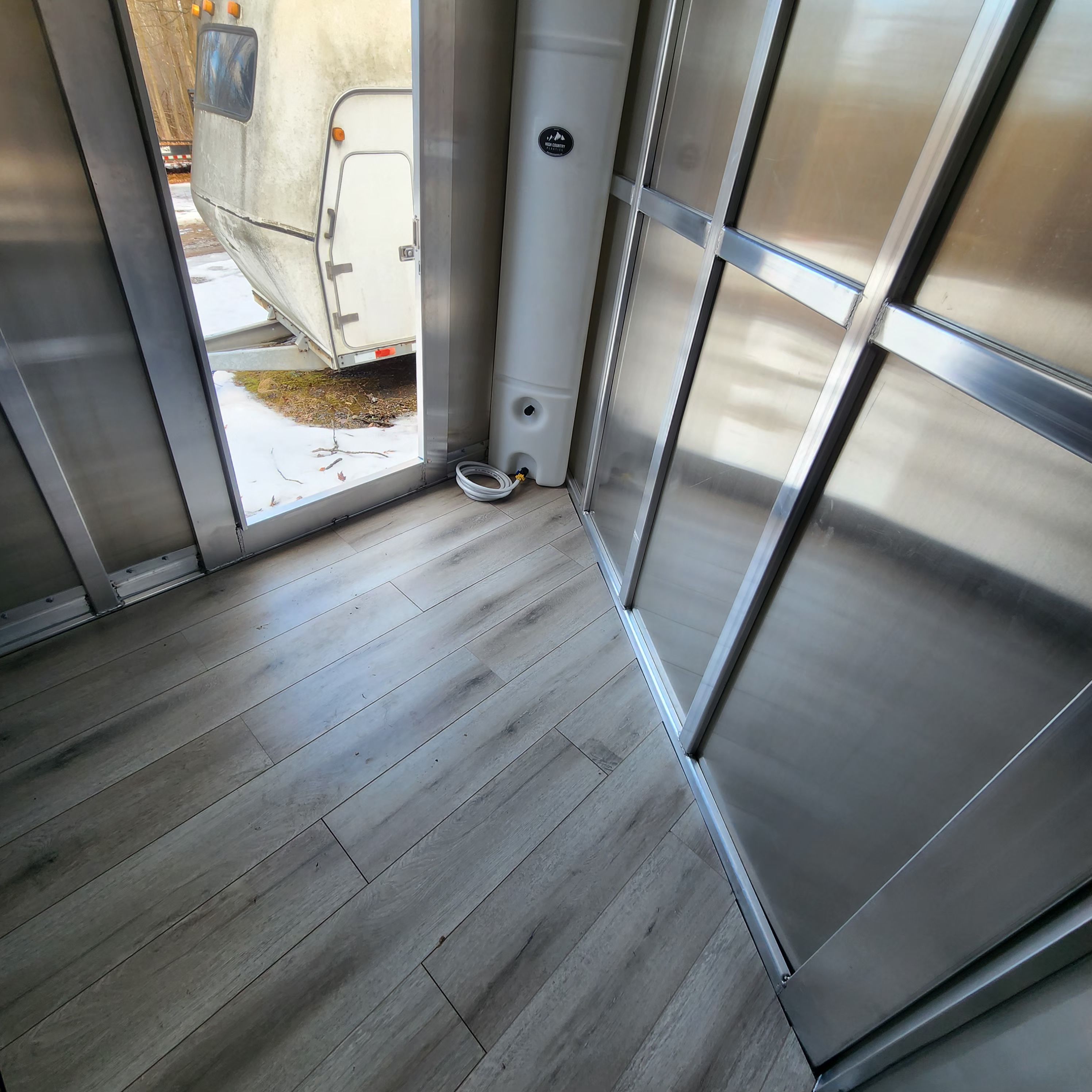 I installed a 30 gallon standing water tank in the dressing room of my trailer.