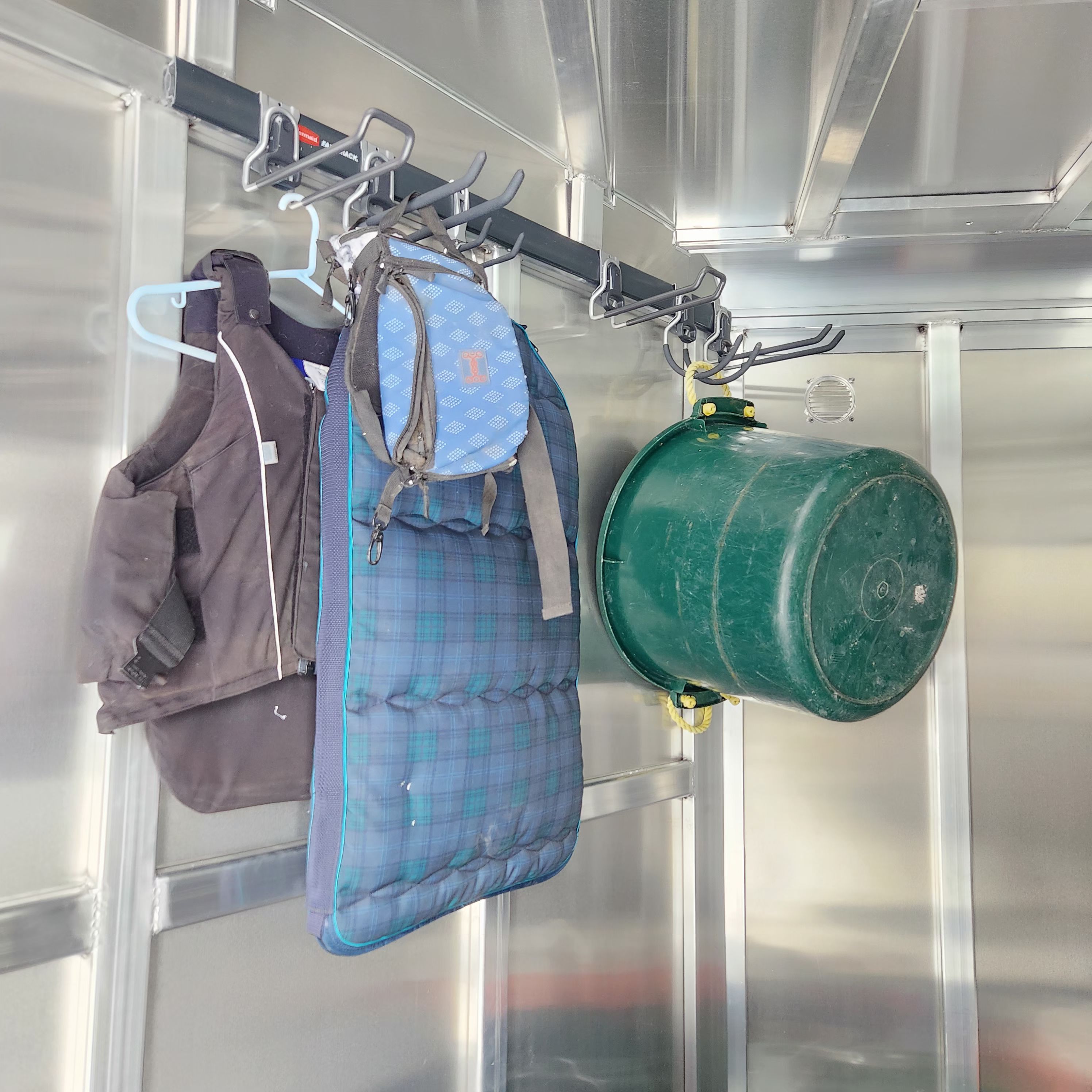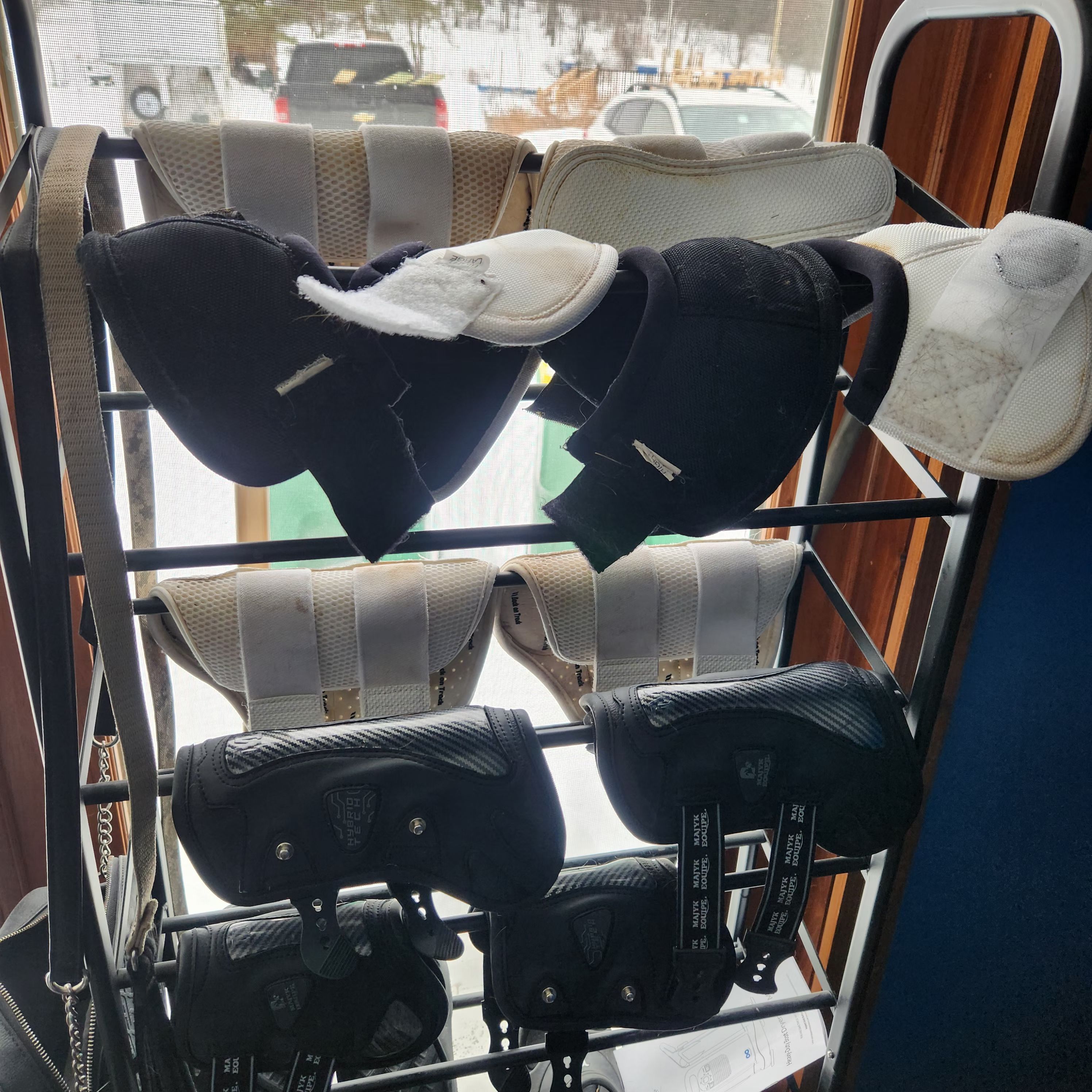 The week before travel I packed bags, installed hooks inside my dressing room. Loaded tack. Loaded sheets, boots, blankets, saddle pads, halters, and more. I loaded my helmet, protective gear, crops, riding clothes, buckets, feed, and everything I think I might need.