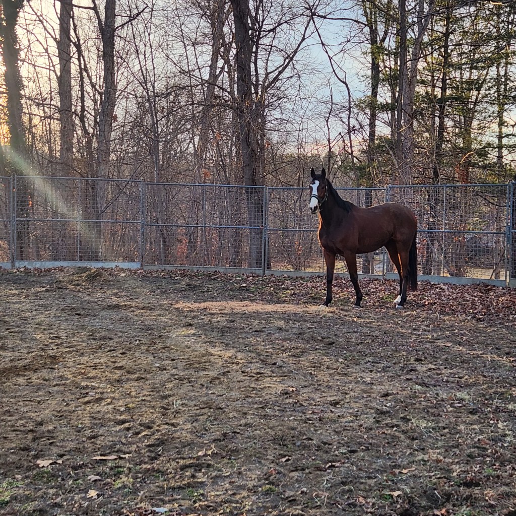 The lesson was a massive success and lasted over 90 minutes. The sun was beginning to set so I cooled him out, untacked, and wasted to time trying to load him back into the trailer to get home. At home I took more time to curry him off and apply liniment. He took a well deserved roll and chilled out for an hour before dinnertime.