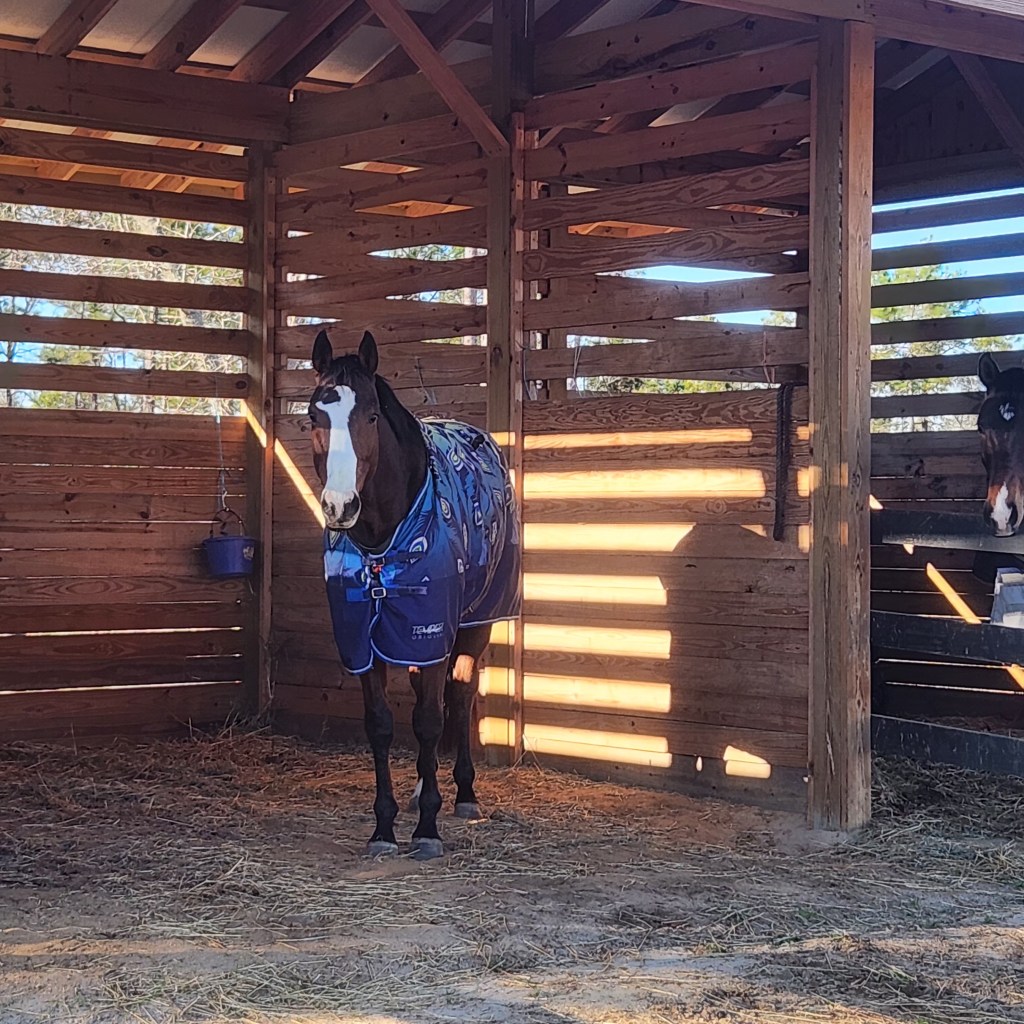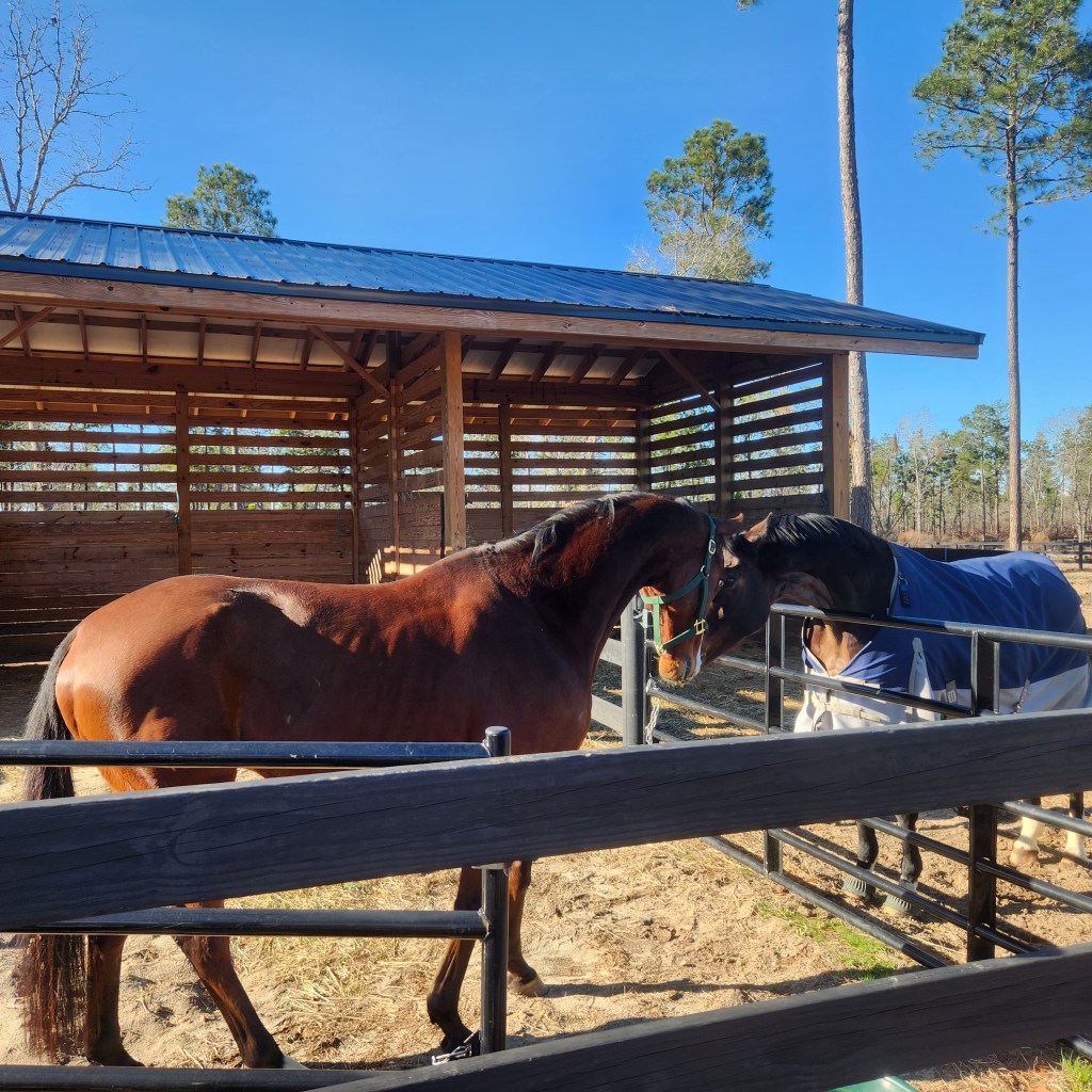 Making a two day trip to South Carolina was the first big challenge. I booked a layover stay at Penmerryl Farm in Greenville, Virginia. The first leg was about 10 hours after all the refueling and pitstops. On Day 1 we really enjoyed our stops at Wawa stations. Stanley unloaded and had a good roll in the round-pen sand. He was a spacious and well bedded stall for overnight while Suzanne and I enjoyed our onsite lodging. In the morning I took Stanley for a half hour walk to loosen up before we loaded back up and departed for our second leg of the trip. In another 8 hours (after fueling and pitstops) we arrived in Aiken, South Carolina! Day 2 we stopped at a few Love’s stations.